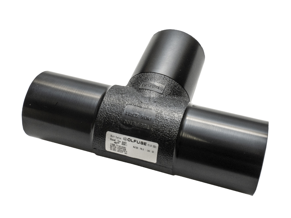 Тройники равнопроходные литые (спиготы) 90° PN16 SDR11 PE100 предназначены для создания ответвлений равного с основной трубой диаметра, с выходным патрубком, расположенным под углом 90°.